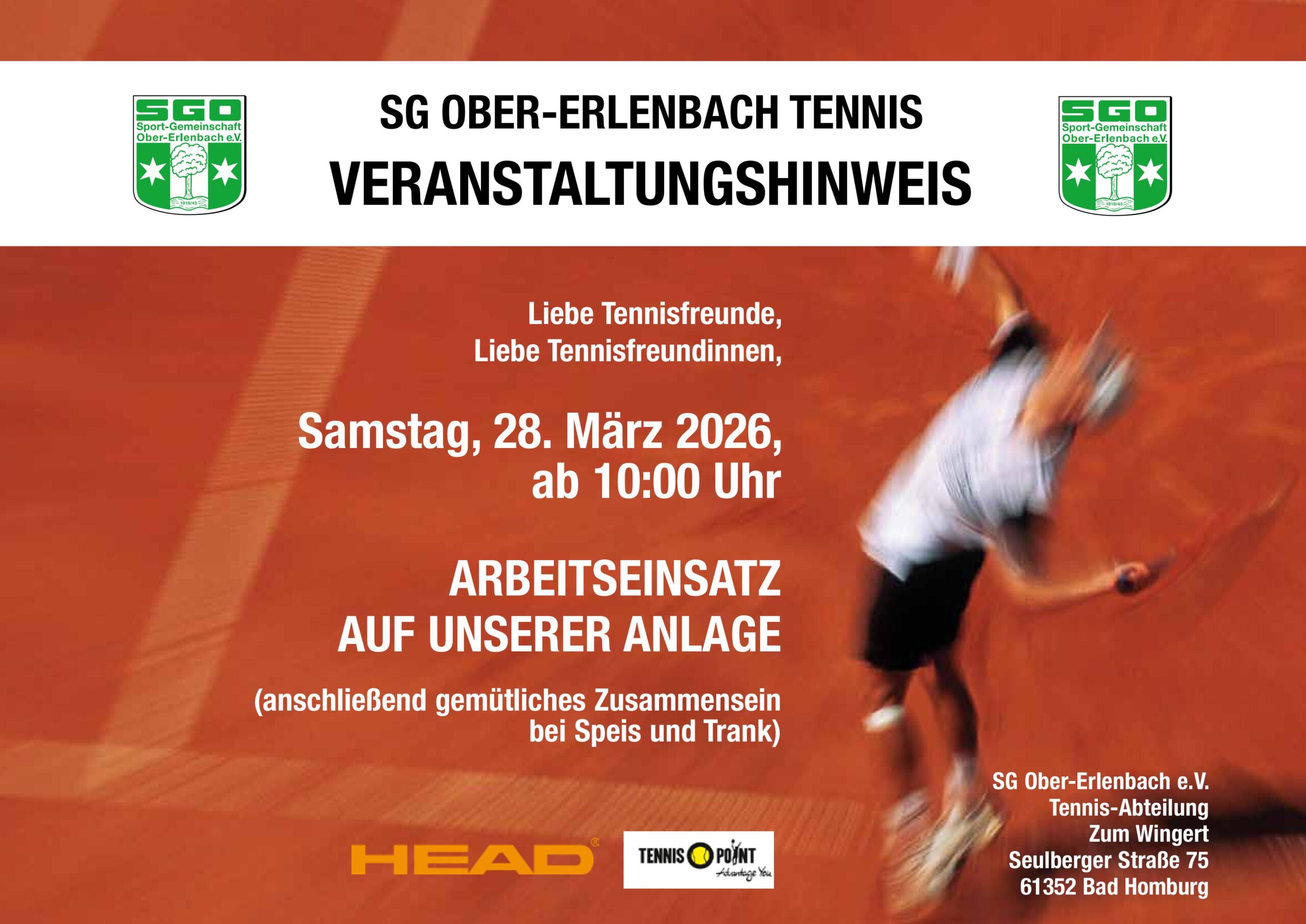 Liebe Tennisfreunde, Liebe Tennisfreundinnen, Liebe Kinder, die Saison 2026 steht für der Tür. Wir bereiten die Anlage auf die Saison vor und treffen uns am Samstag 28.03.2026 ab 10 Uhr auf der